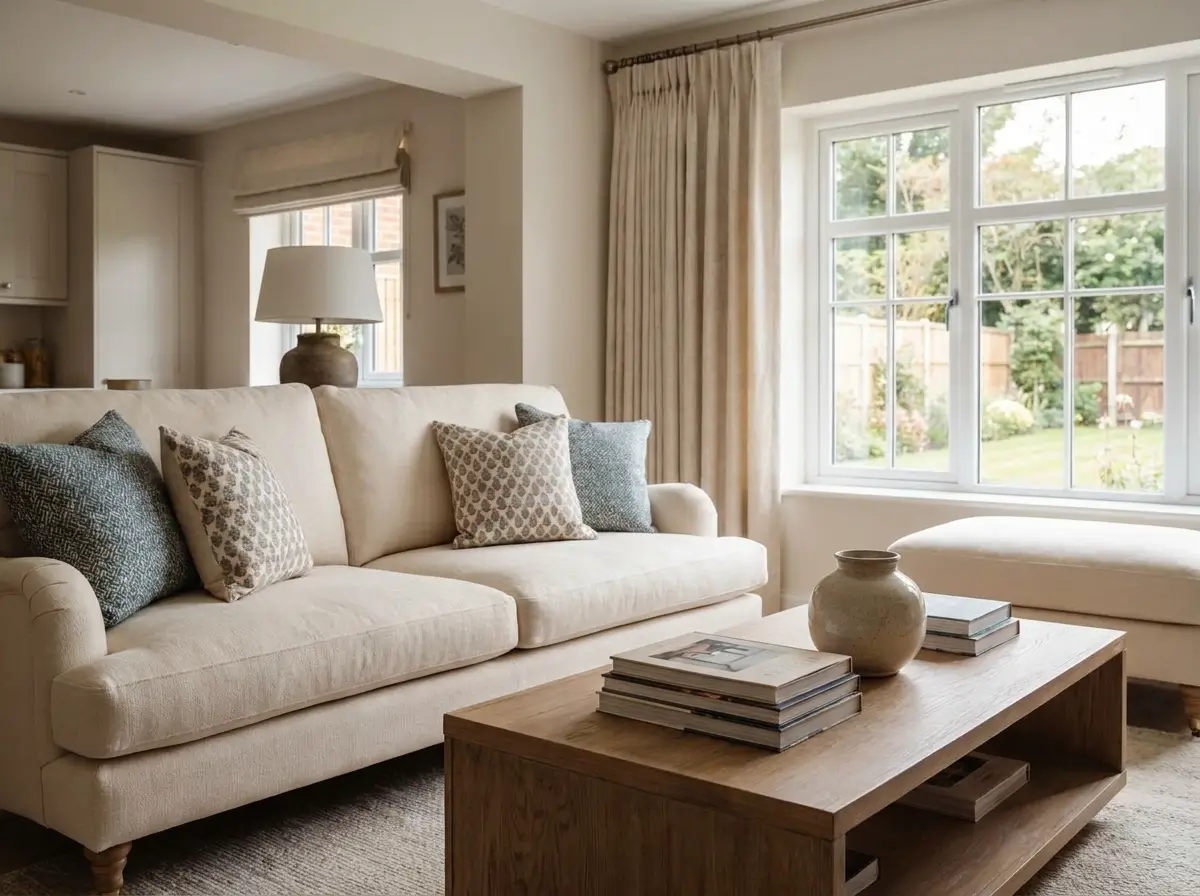 Even in a large living room, you can create a “den” by carving out a micro-nook. Place a comfortable armchair in a corner with a small side table and a reading light. It defines the space as a place for rest.